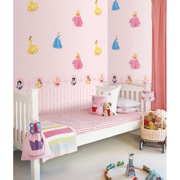 Các bé khi xem phim hoạt hình rất thích các nhân vật nổi tiếng trong phim như công chúa, hoàng tử, do đó mà các bé rất thích căn phòng của mình luôn tràn ngập các hình ảnh đáng yêu của công chúa. Các ông bố bà mẹ hiểu được tâm lý của con, nên chọn cách trang trí giấy dán tường màu hồng kết hợp các hình ảnh nhân vật công chúa như trong phim hoạt hình. Ga giường cũng được chọn màu hồng nhạt để cùng tông màu với giấy dán tường để tạo ra một không gian nhẹ nhàng, mộng mơ, không kém phần tinh tế.